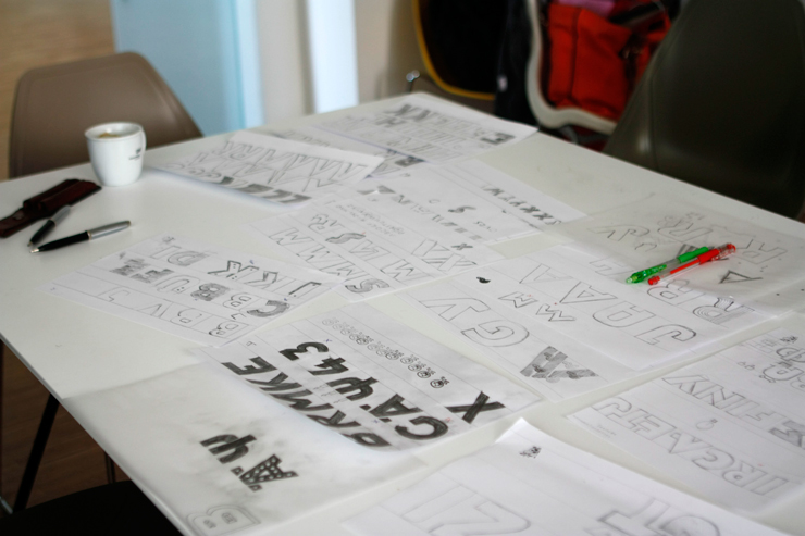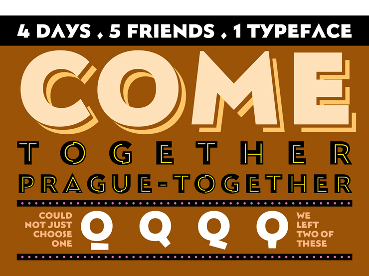 DateMay 2015 | Right from the start, TypeTogether never had an actual physical office space. The company is incorporated in the Czech Republic and its employees and collaborators are spread around the globe. Usually we meet at different typography conferences that are held throughout the year. Since a proper meeting once a year is quite little, we decided to organise a working get-together of the core design team; learning more about the different parts of the font making and publishing process, having fun and doing type design from the very conceptual stage to the final upload to our web store. The Ahoj typeface is the result of this four-day workshop at "Galerie Vernon" in Prague. Ahoj can be downloaded and used for free. If you like it though, we encourage you to make a donation to one of the three charities listed below to help the victims of the earthquake in Nepal. To get things started, here is the receipt for our own contribution to one of them. DOWNLOAD FONT and See more images on flickr. ![]() Ahoj is a bold display sans serif inspired by images of old signs and lettering found in our different home cities. We started by making a selection of various features we liked from the images and then started sketching some basic shapes to explore weight, proportions and general DNA of the new font. ![]() ![]() ![]() ![]() ![]() ![]() By the end of day one we arrived at some nice proportions for a titling font comprised of only upper case characters. We also started to play with the idea of adding some decorative patterns that could be used as coloured layers on top of the main font. ![]() ![]() During the third day the team was working at full speed populating the character set with some accents and symbols, and fine tuning the various textures that can be added to the font. These include shadows, interlocking inlines, and “bolt holes” inspired by one of the image from a London sign. ![]() ![]() ![]() ![]() ![]() ![]() The last day of work was partially devoted to various post-production processes such as kerning, programming OpenType features and screen optimization. Finally we all had some fun using the font and creating various samples of what can be done with it. ![]() ![]() ![]() ![]() ![]() If you liked this typeface we invite you to donate to any of these charities recommended by international media, to help Nepal to recover from the devastation and tragedy caused by the series of earthquakes since April 25. To get things started, here is the receipt for our own contribution to one of them. Dzi The dZi Foundation started in 1988 with the mountaineers Jim Nowak and Kim Reynolds who had a in-site knowledge of communities and remote regions with difficult access to basic needs. The Foundation is collection funds to help those communities rebuilding schools, homes and local infrastructure. Himalayan Children Charities When tragedies like the earthquake happen children can be easily victimised therefore they need an extra help and support, specially those who has lost the family structure. The funds collected by Himalayan Children Charities will go to will go directly to the many Nepalis affected by this tragedy. WaterAid After disasters one of the main enemies is not only hunger, but the outbreaks of waterborne diseases like typhoid and cholera. WaterAid funds are meant to provide emergency water supplies, hygiene kits, water purification tablets and emergency trenches for sanitation. ![]() | |